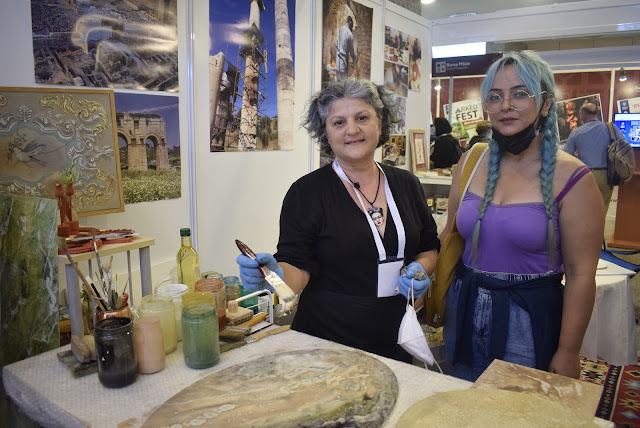 Demir Restorasyon ve Konservasyon standında ziyaretçiler için mermer taklidi workshop’u yaparak eğlenceli deneyim kazandırdı, meraklı öğrenciler ve katılımcılar yaptıkları çalışmaları alarak anılarına bir yenisini kattı. 35 yıllık kalemkar, yıldız teknik üniversitesi kültür varlıklarını koruma ve onarım bölümündeki öğretim görevlisi, sanatçı Emine Verim Eskiköy klasik mermer taklidini köşk kasır ve köşklerdeki mimari yapıların büyük alanlarındaki boyama tekniğini atölye ortamında daha küçük çalışma alanında çalışır kıldı. Nil Mucuk minyatür el yapımı birkaç sanatı içeren cilt örneklerinde hayran bırakdı.